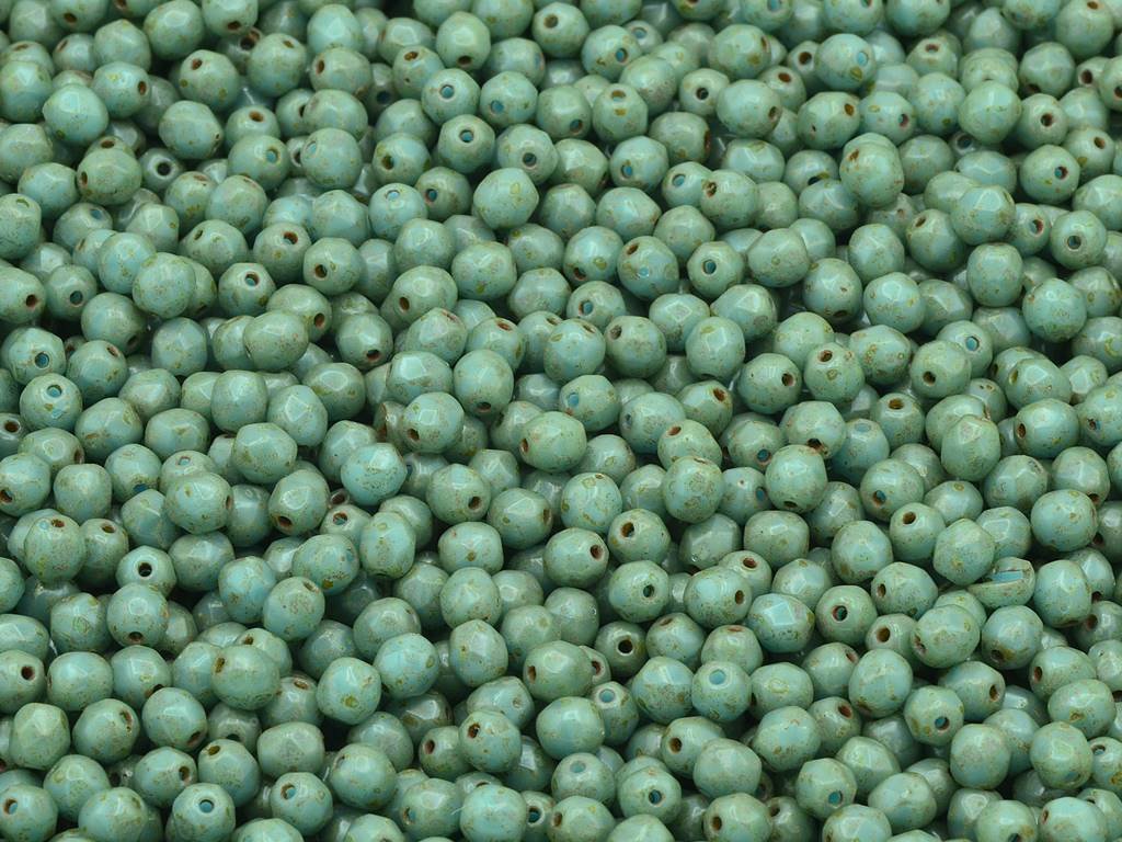 Kvalitní české skleněné broušené korálky tzv. „ohňovky“, velikost 3 mm, obsah balení 60 ks nebo níže uvedené. Barva tyrkys s dekorem 86800 (travertin).