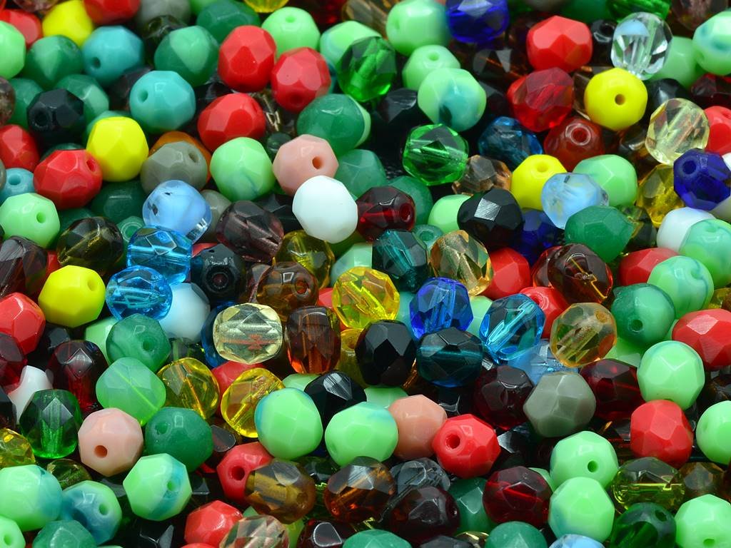 Kvalitní české skleněné broušené korálky tzv. „ohňovky“, velikost 6 mm, obsah balení 30 ks nebo níže uvedené. Mix barevDoplňkové parametry