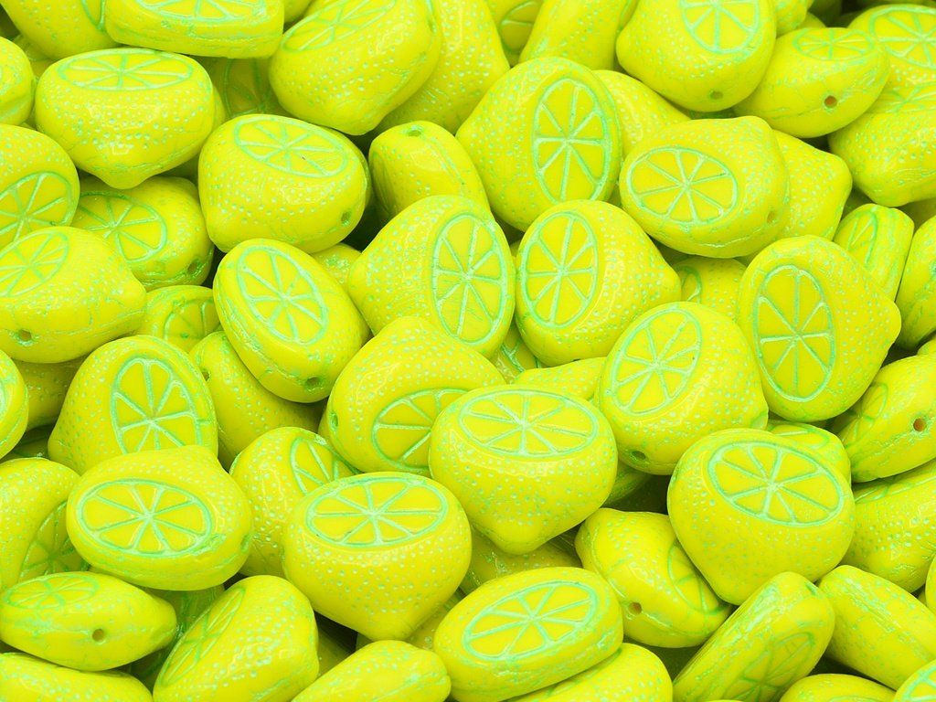 Kvalitní české skleněné korálky ve tvaru citronu, velikost 15 mm, obsah balení 5 ks nebo níže uvedené. Barva sytá žlutá s dekorem 54322.
