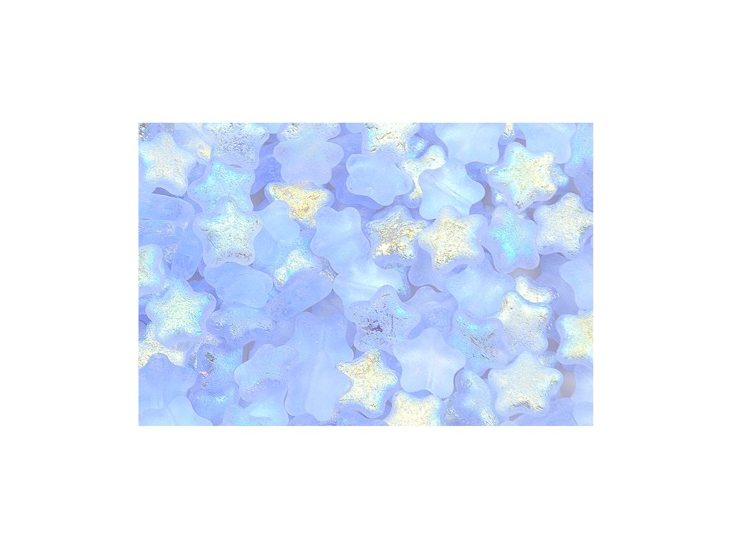 České skleněné korálky tvaru hvězdičky, velikost 12 mm, obsah balení 10 ks nebo níže uvedené. Barva světlý leptaný safír s dekorem 28701 (AB).