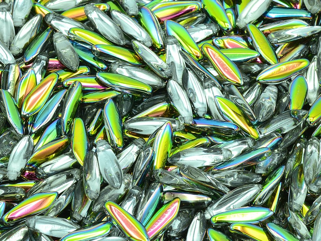 České skleněné korálky ve tvaru jazýčku nebo také jehly jsou často používané k výrobě bižuterie. Nabízíme velikost 5x16 mm, obsah balení 15 ks nebo níže uvedené. Barva křišťál s povchrovou úpravou 28101Doplňkové parametry