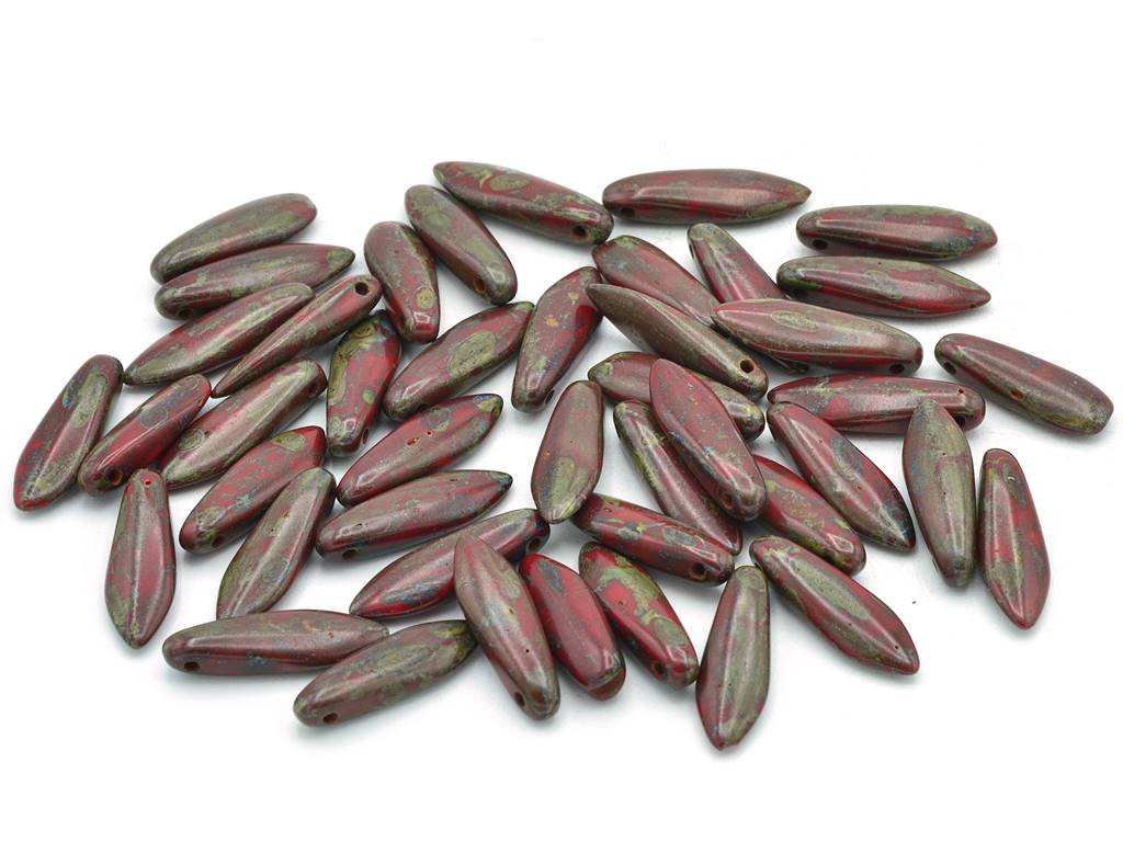 České skleněné korálky ve tvaru jazýčku nebo také jehly, velikost 5x16 mm, obsah balení 15 ks nebo níže uvedené. Barva korál s travertinem 86800.