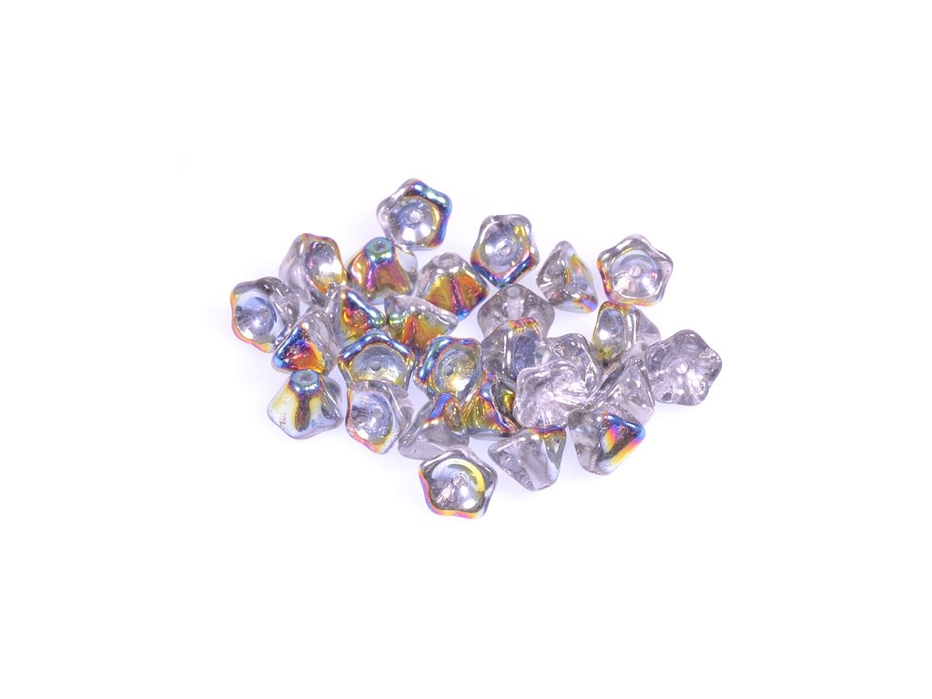 Kvalitní české skleněné korálky ve tvaru kytičky 6x8 mm, obsah balení 30 ks nebo níže uvedené. Barva křišťál s povrchovou úpravou 28101Doplňkové parametry