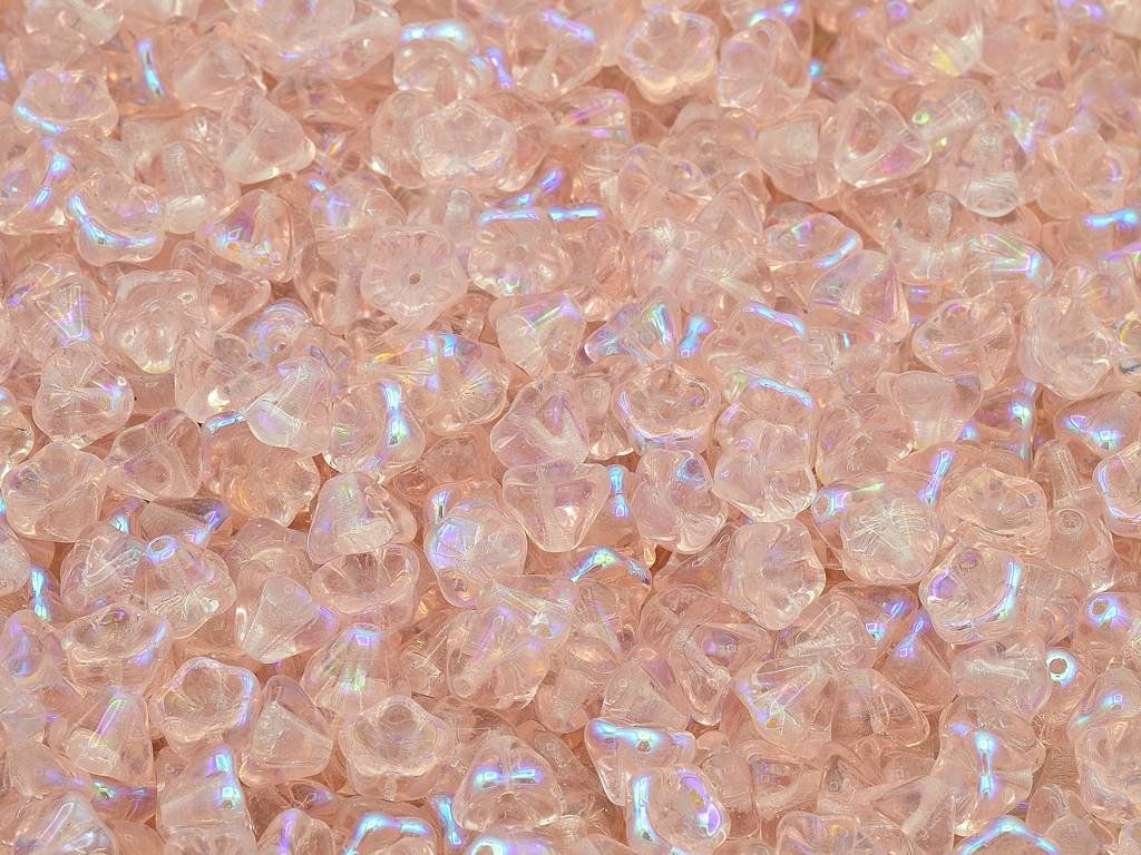 Kvalitní české skleněné korálky ve tvaru kytičky 6x8 mm, obsah balení 30 ks nebo níže uvedené. Barva rozalín s dekorem 28701 (AB).