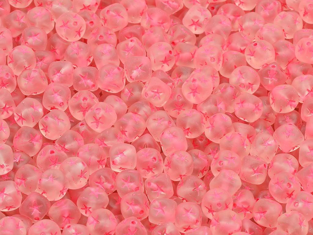 Kvalitní české skleněné korálky ve tvaru kostičky s reliéfem hvězdičky, velikost 7 mm, obsah balení 30 ks nebo níže uvedené. Barva rozalín/mat a zátěrem 54208.