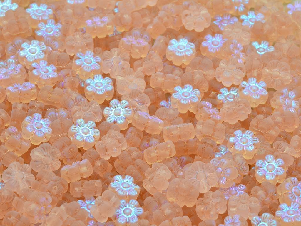 Kvalitní české skleněné korálky ve tvaru kytičky 8 mm, obsah balení 30 ks nebo níže uvedené. Barva rozalín/mat s dekorem 28701.