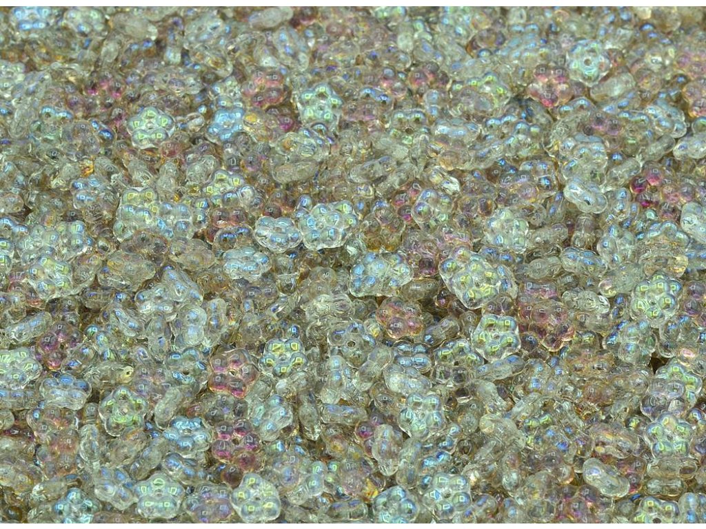 Kvalitní české skleněné korálky ve tvaru kytičky, velikost 5 mm, obsah balení 60 ks nebo níže uvedené. Barva křišťál s dekorem 27307Doplňkové parametry