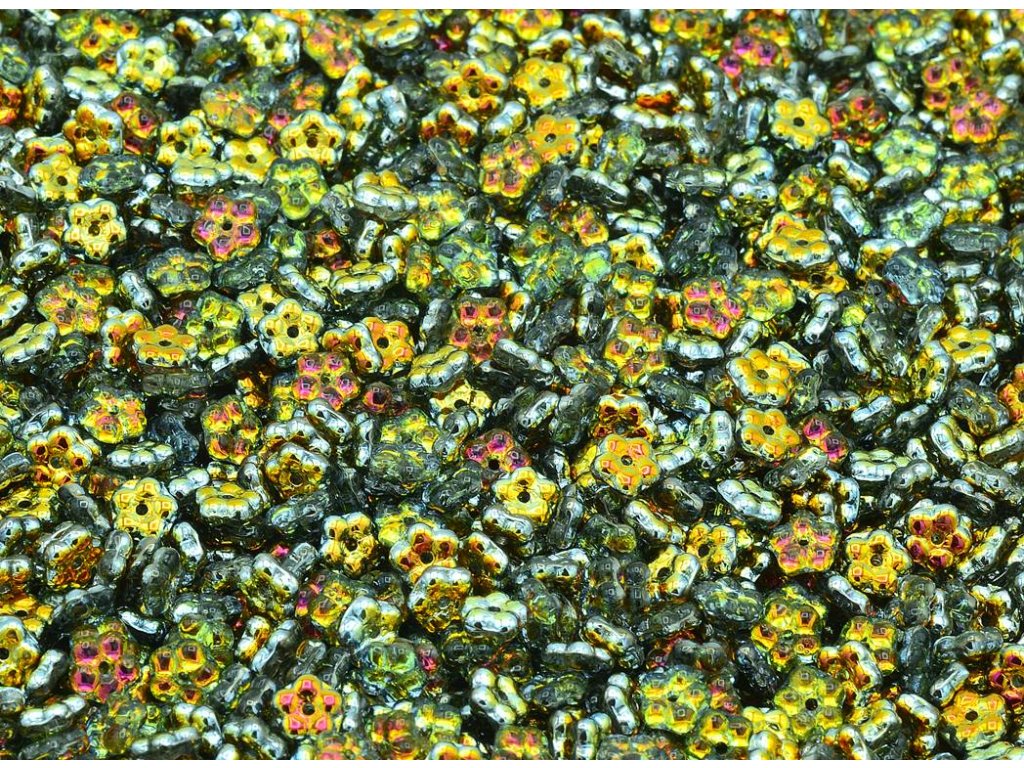 Kvalitní české skleněné korálky ve tvaru kytičky, velikost 5 mm, obsah balení 60 ks nebo níže uvedené. Barva křišťál s dekorem 28001Doplňkové parametry