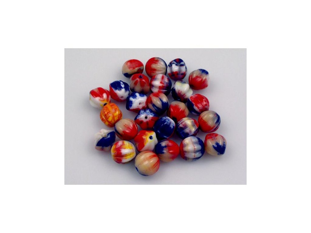 Kvalitní české skleněné korálky ve tvaru melounku 10 mm, obsah balení 15 ks nebo níže uvedené. Barva barevný mix, II jakostDoplňkové parametry