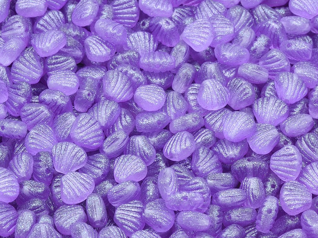 České skleněné korálky ve tvaru mušle, velikost 8x7 mm, obsah balení 30 ks nebo níže uvedené. Barva křišťál s dekorem 542004.