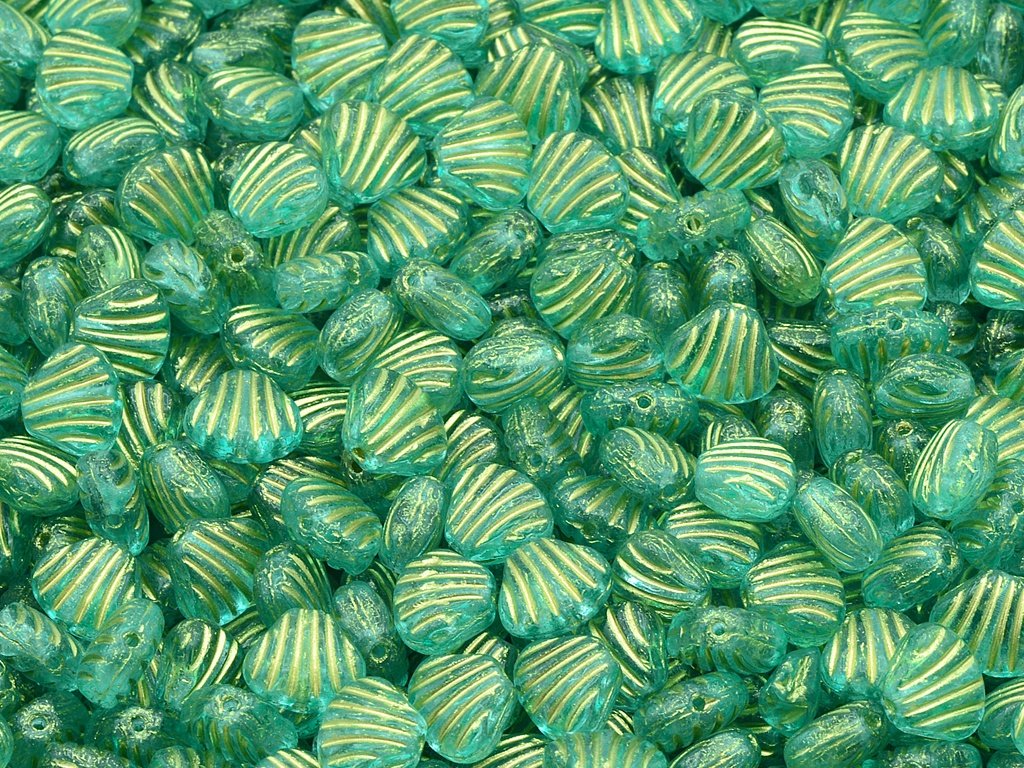 České skleněné korálky ve tvaru mušle, velikost 8x7 mm, obsah balení 30 ks nebo níže uvedené. Barva křišťál s dekory 54302 a 34309.