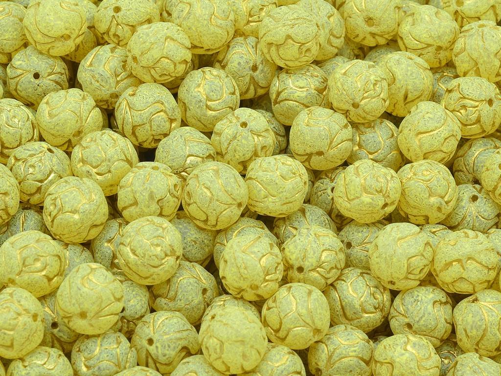 České mačkané skleněné korálky s reliéfem růže, velikost 10 mm, obsah balení 15 ks nebo níže uvedené, barva křišťál s kombinací dekorů 54302 a 84302.