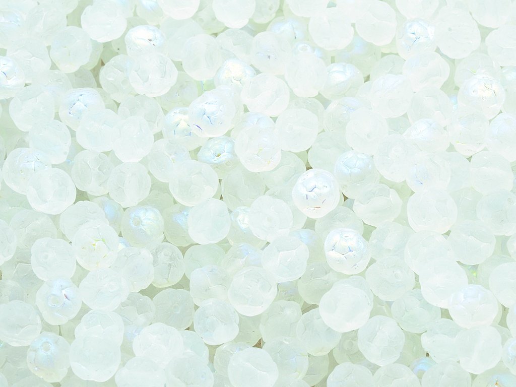 Kvalitní české skleněné korálky ve tvaru růžičky, rozměr 7 mm, obsah balení 30 ks nebo níže uvedené, barva křišťál/mat s dekorem 28701 (AB).