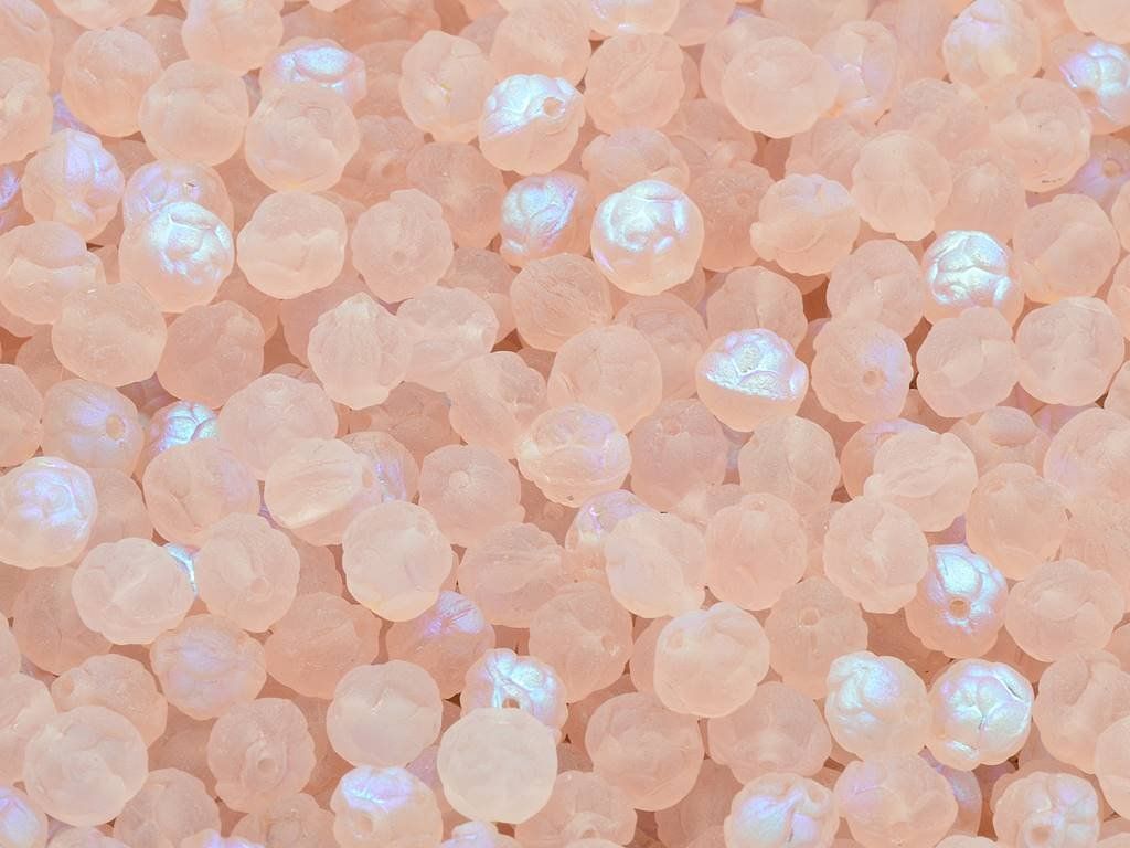 Kvalitní české skleněné korálky ve tvaru růžičky, rozměr 7 mm, obsah balení 30 ks nebo níže uvedené, barva rozalín/mat s dekorem 28701 (AB).