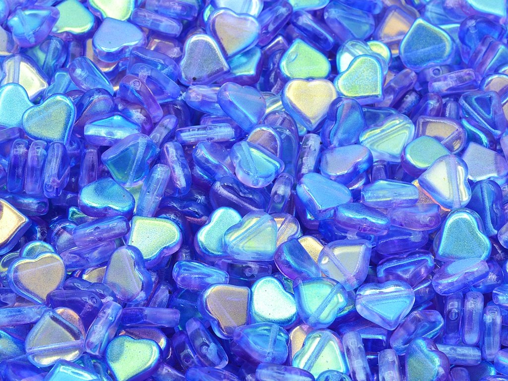 Mačkané korálky ve tvaru srdíčka, velikost 9 mm. obsah balení 15 ks nebo níže uvedené, barva křišťál s dekorem 48102.