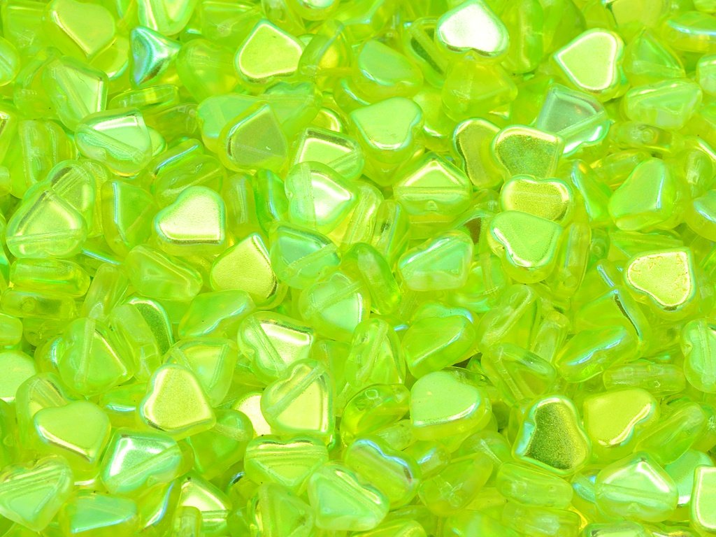 Mačkané korálky ve tvaru srdíčka, velikost 9 mm. obsah balení 15 ks nebo níže uvedené, barva křišťál s dekorem 48126.