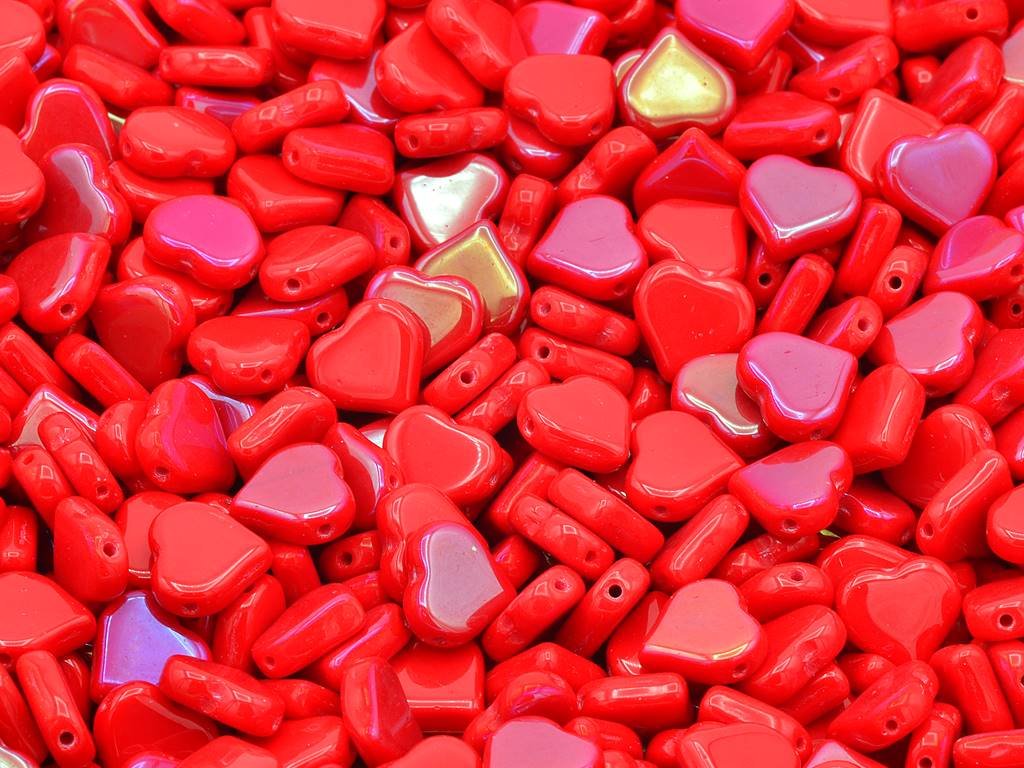 Mačkané korálky ve tvaru srdíčka, velikost 9 mm. obsah balení 15 ks nebo níže uvedené, barva korál s dekorem 28701 (AB).