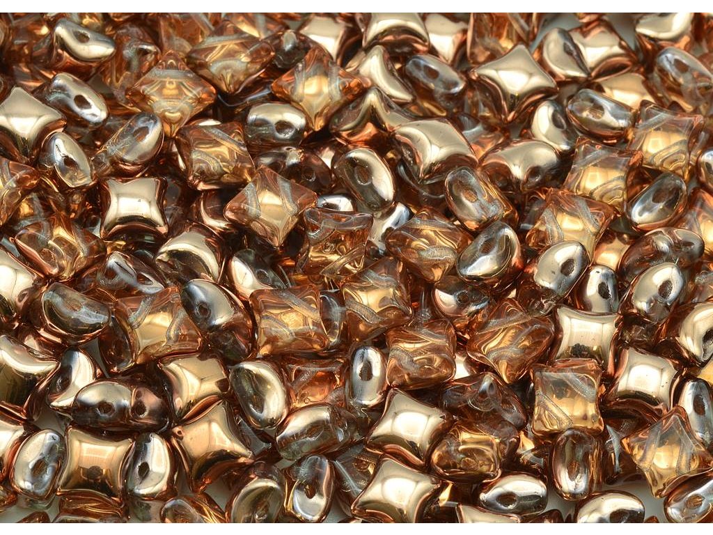Dvoudírkový korálek WIBEDUO®, velikost 8x8 mm, průměr dírky 0,75 mm, obsah balení 20 ks nebo níže uvedené. Barva křišťál s dekorem 27101.